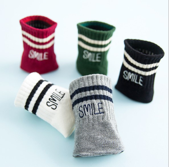 3 pairs of men and women Korean Harajuku mid-tube socks couple socks autumn and winter sports smile embroidery cotton pile socks