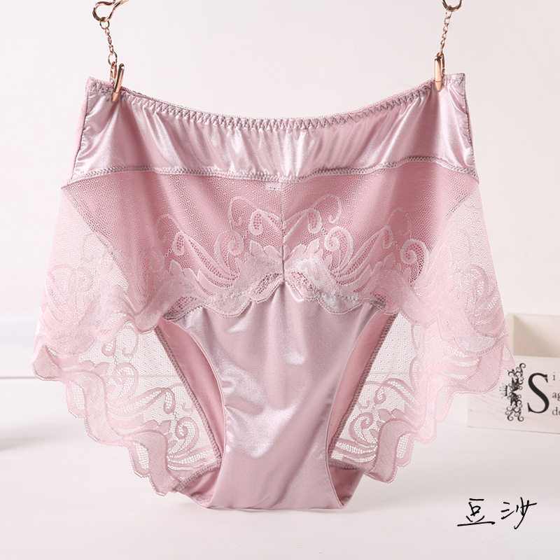 Breathable ice silk high waist plus fat plus size modal lace sexy fat mm200 pounds panties women briefs