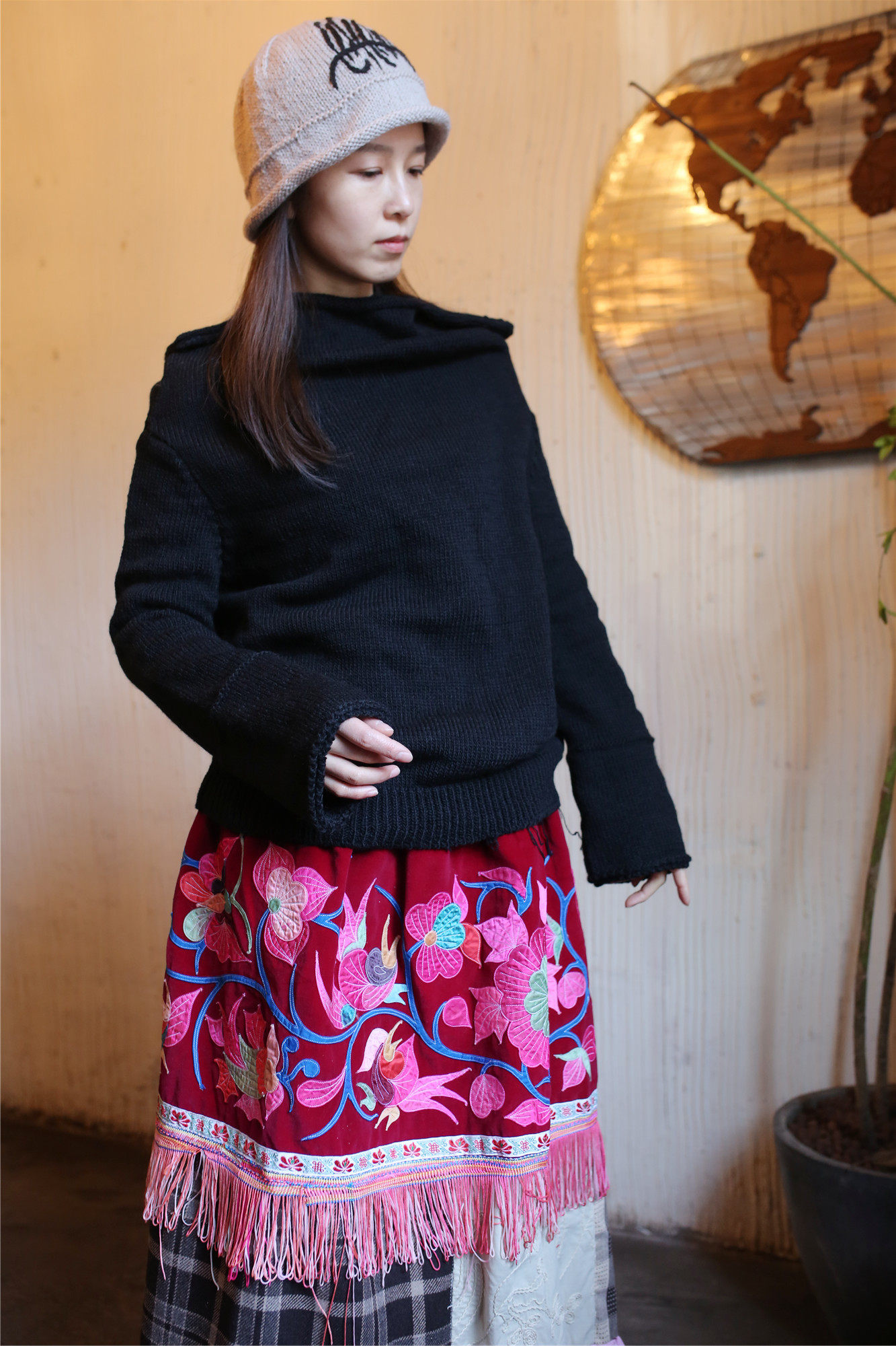 Abstract ideas ~ Gathering birds ~ Literary fan retro hand-knitted embroidery hair accessories hat loose