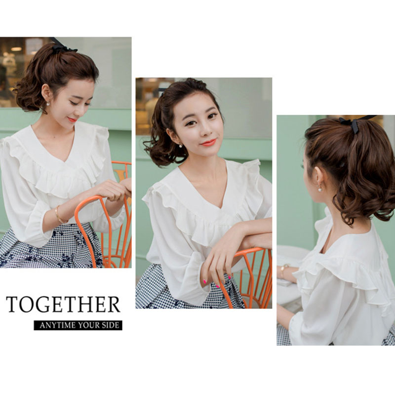 Wig female ponytail short curly hair natural realistic fluffy bandage pear flower curly ponytail wig short curly hair