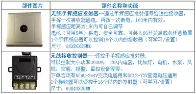 Wired DC5-36V concealed panel hand-waving switch Wired AC80-250V concealed panel Hand-waving switch Wireless 90-264V Concealed panel hand-waving switch Wireless 90-26