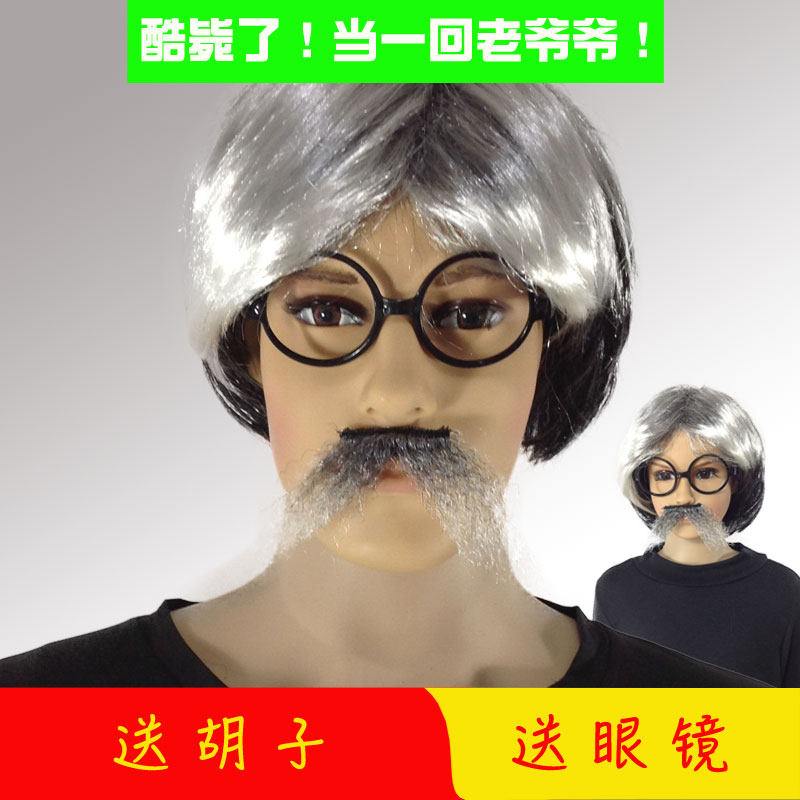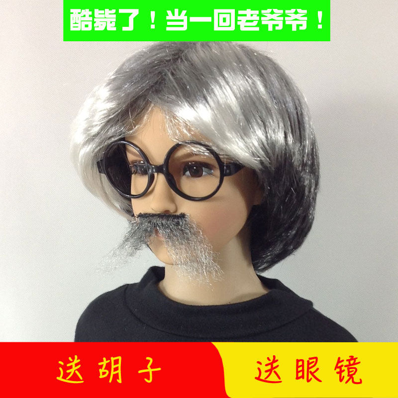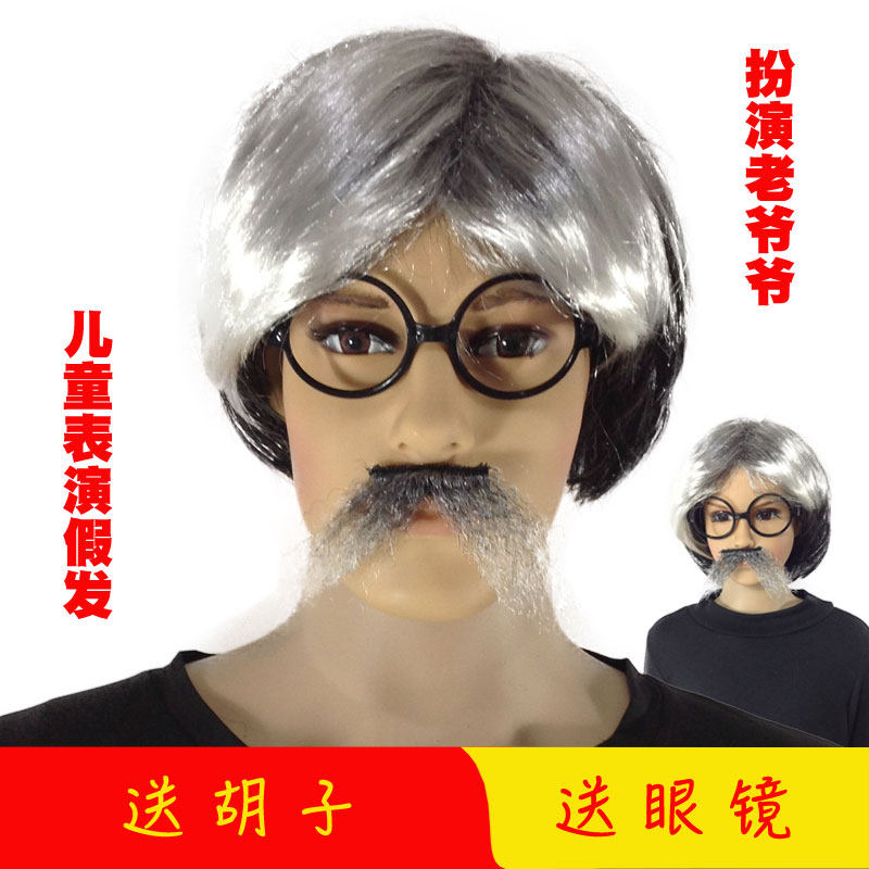 Children Wig Kindergarten Performance Old Grandpa Wig Adult Stage Props For Funny Wig Dad Wig