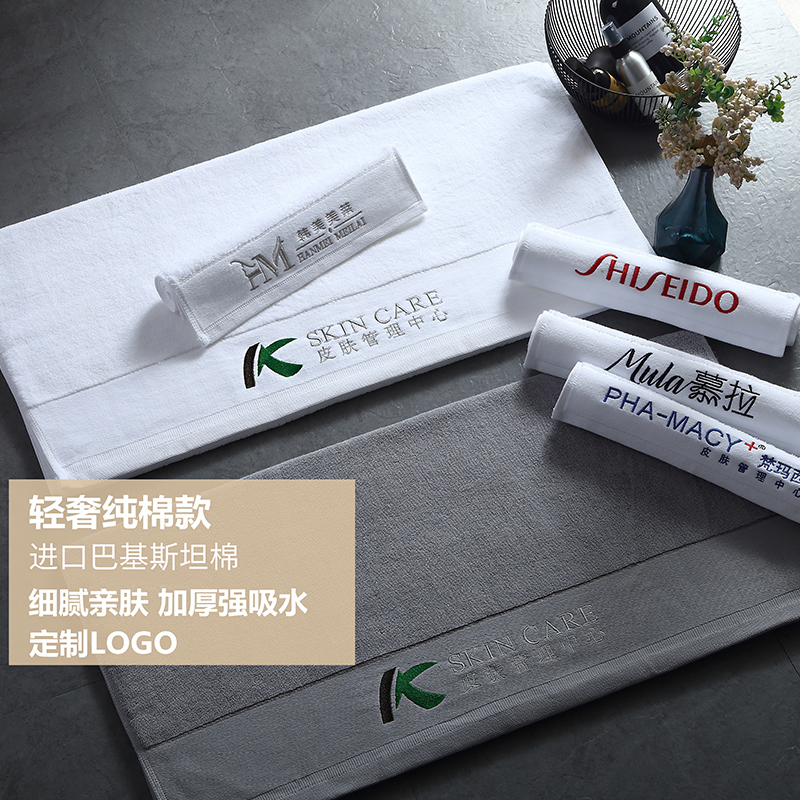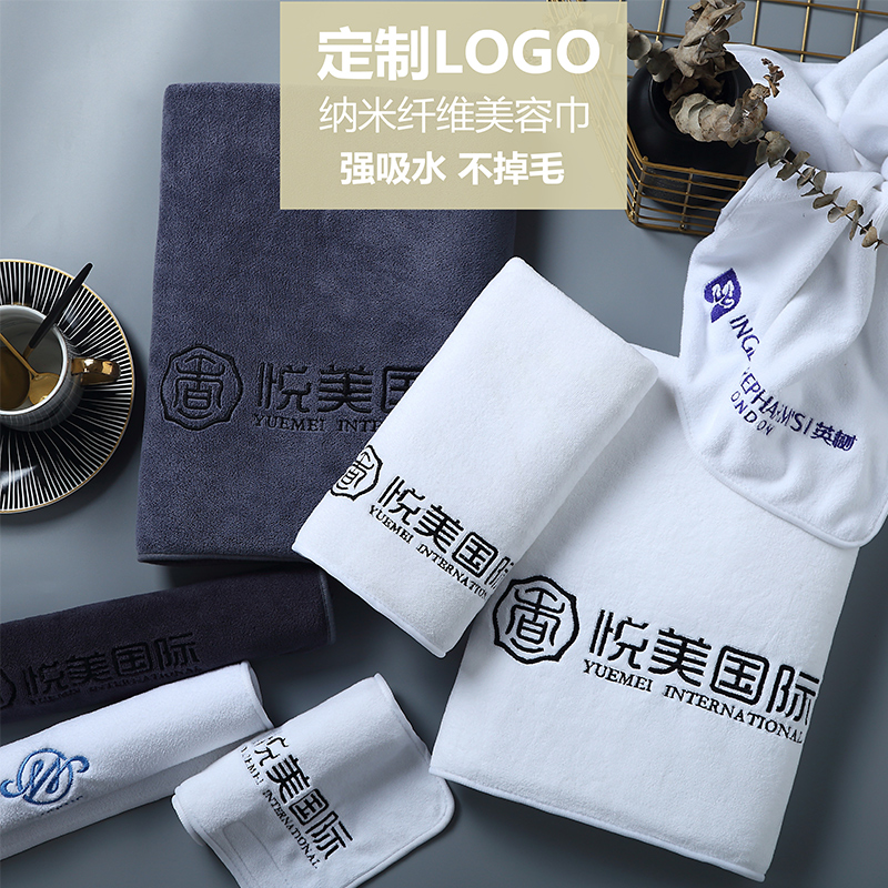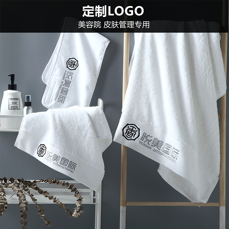 Beauty salon towel custom printed logo embroidered word skin management special pure cotton head scarf custom-made absorbent white