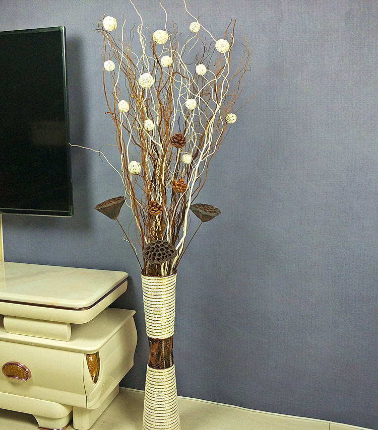 Flower arrangement ash willow dry branches and branches decoration living room floor-to-ceiling window partition home decoration dry flowers modern simplicity