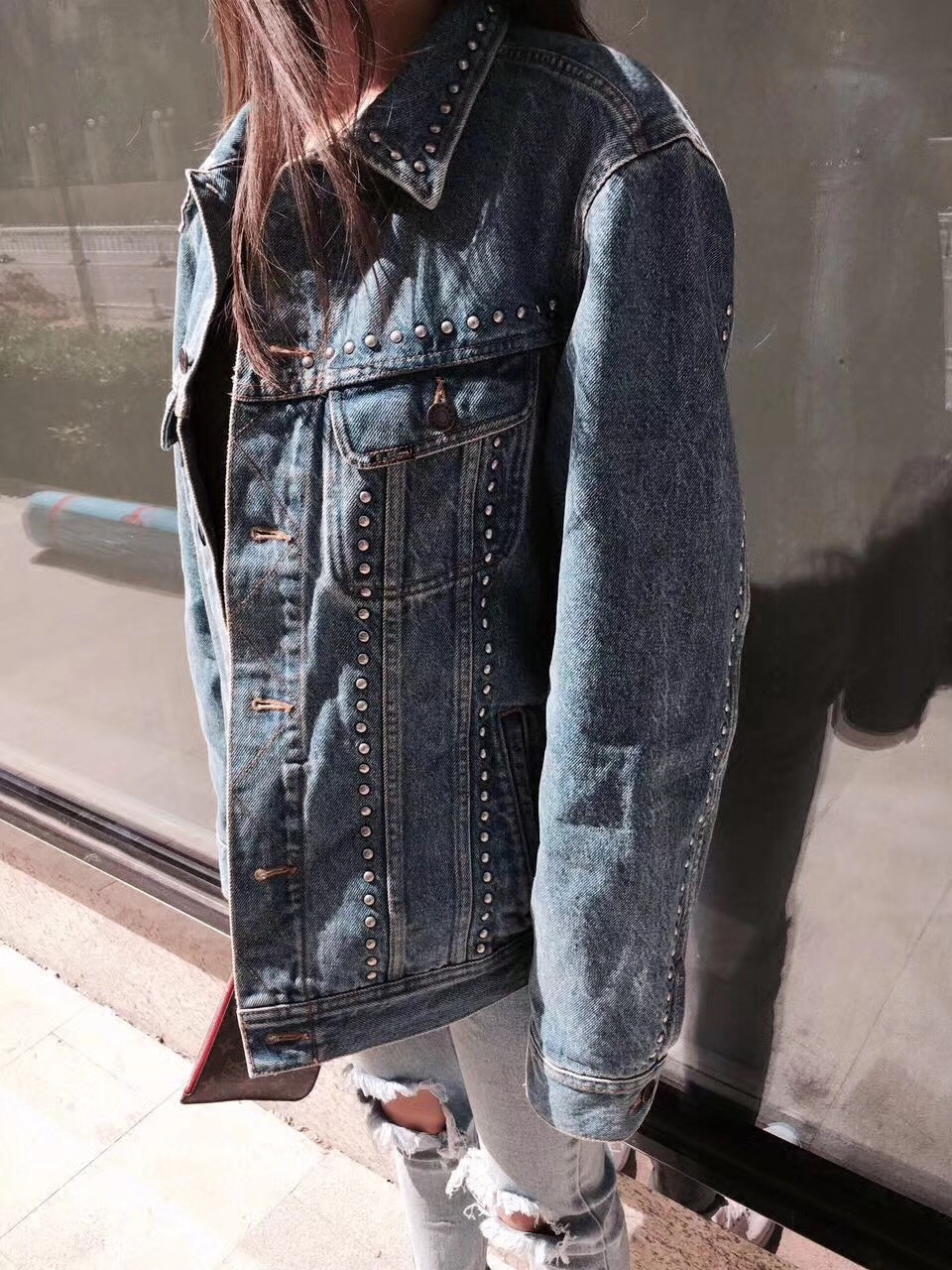 Studded Denim Trucker Jacket Wicker Denim Jacket Jacket