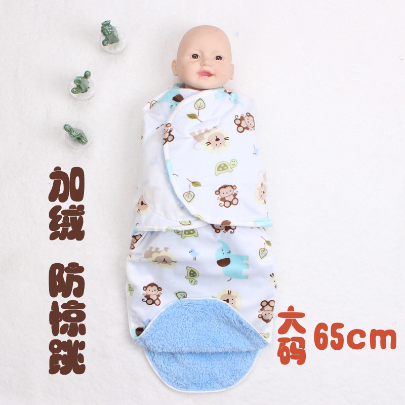 Autumn and winter double-layered baby put scary sleeping bag swaddle baby with zipper anti-shock blanket large plush lamb velvet