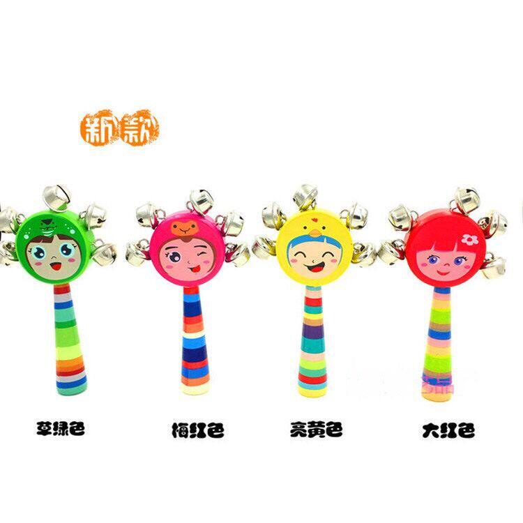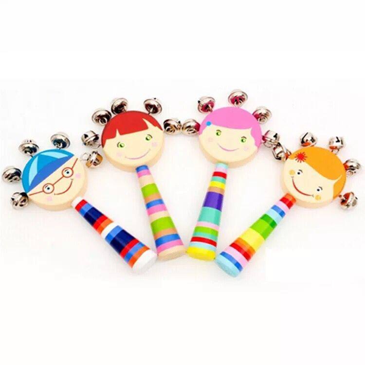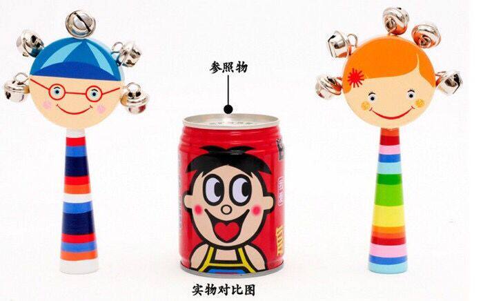 Baby wood Cartoon smiley face shaking Suzuki with wooden strings headboard Music bell with bell ringing baby Early to teach Puzzle Toys