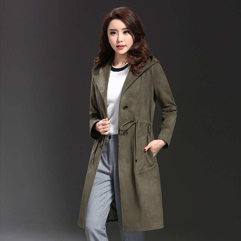 Clear Barn Special Price Windsuit Woman Mid Spring Autumn Korean version Large size dress Skinder dress Skinder lace with cap windcoat jacket