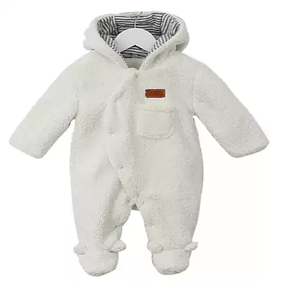 Newborn baby clothes jumpsuit autumn and winter thickened men and women baby outside bag foot climbing clothing lamb cashmere warm clothes