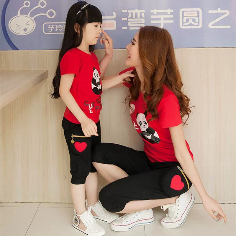 Net red family and child clothing three - member four - member mother and daughter dress to pie 2022 new tide mothers and children's sports suit