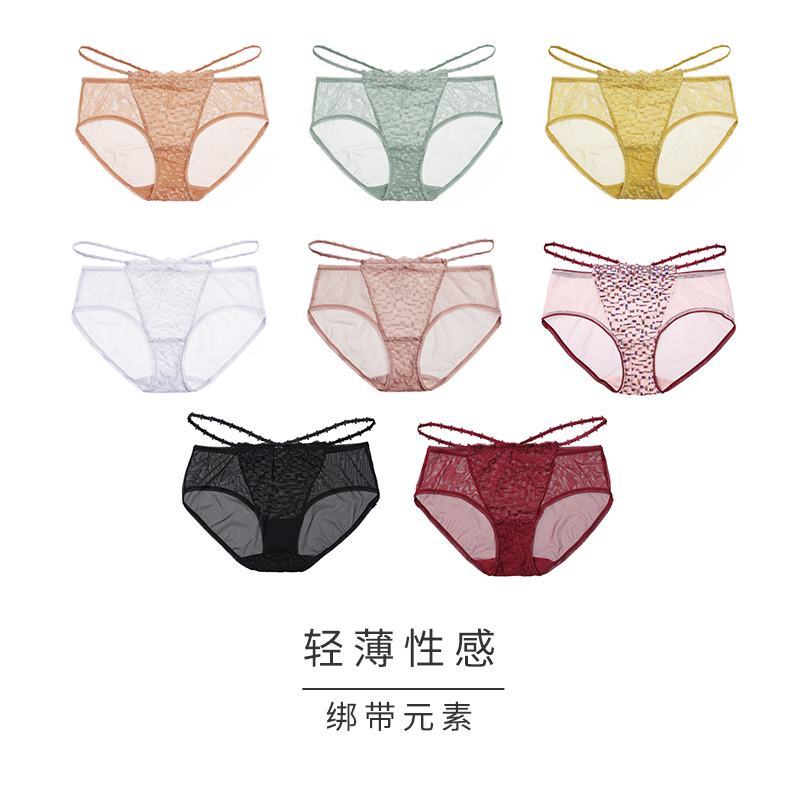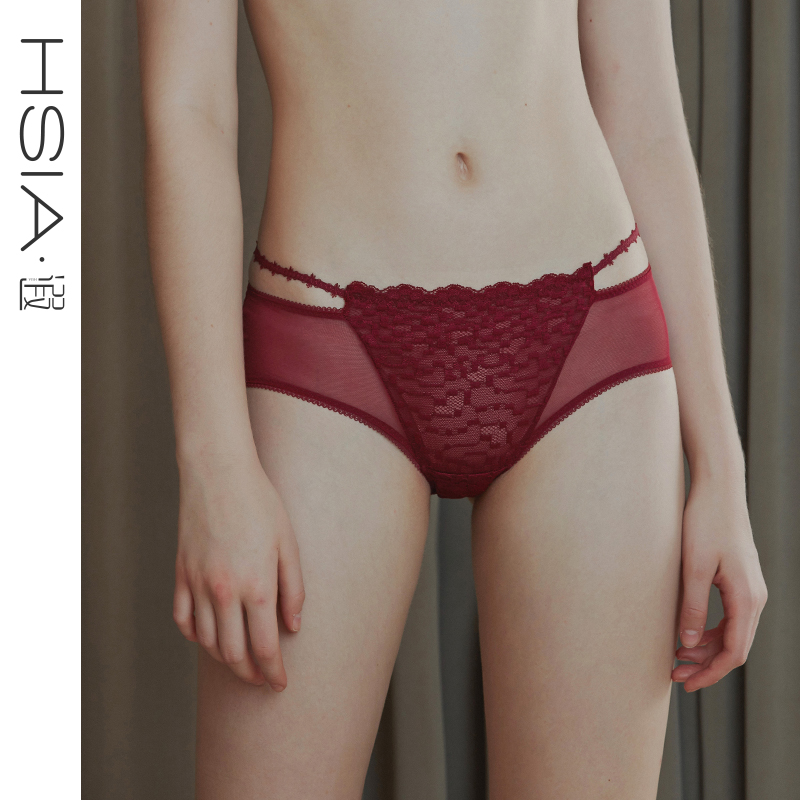 HSIA reverie mesh ultra-thin boxers sexy hot cotton bottom wave mid-waist lace panties for women