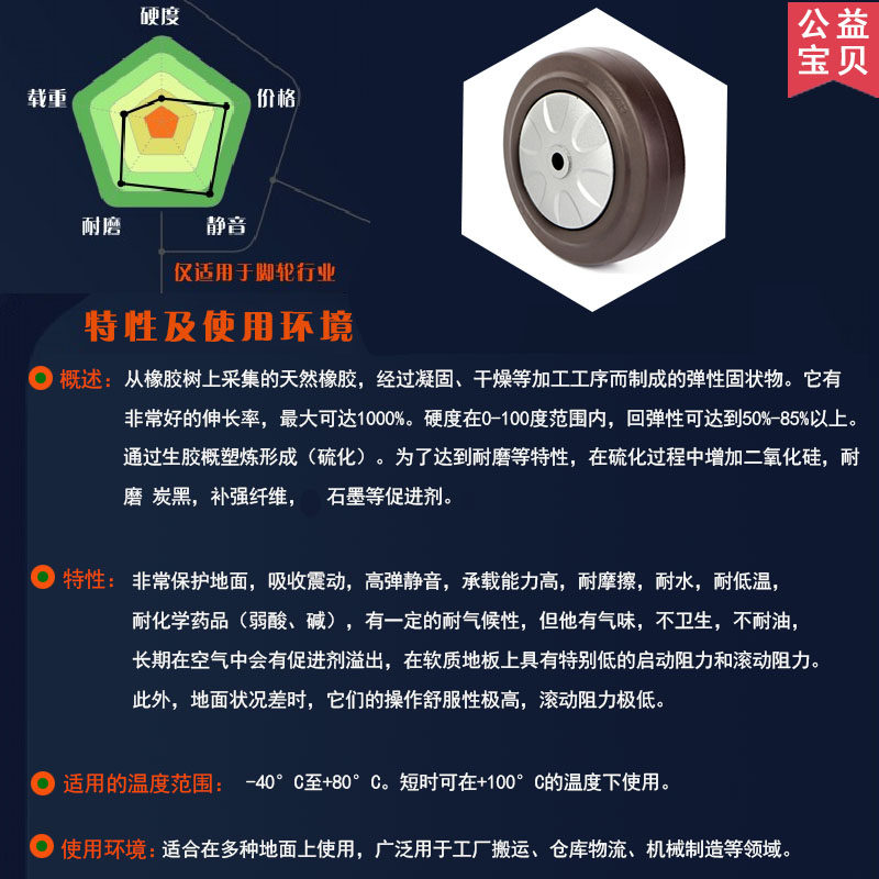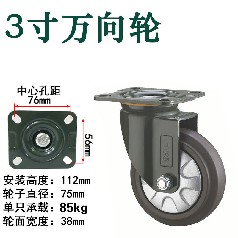 SUPO Xiangrong 3 inch 4 inch 5 inch universal wheel mute wheel elastic rubber wear-resistant trolley wheel steering wheel