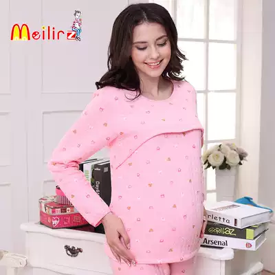 Three layers of warm moon clothing cotton padded cotton thick nursing home clothing pregnant women postpartum large size long sleeve breastfeeding suit