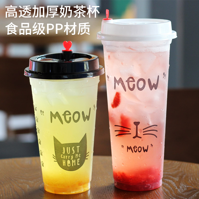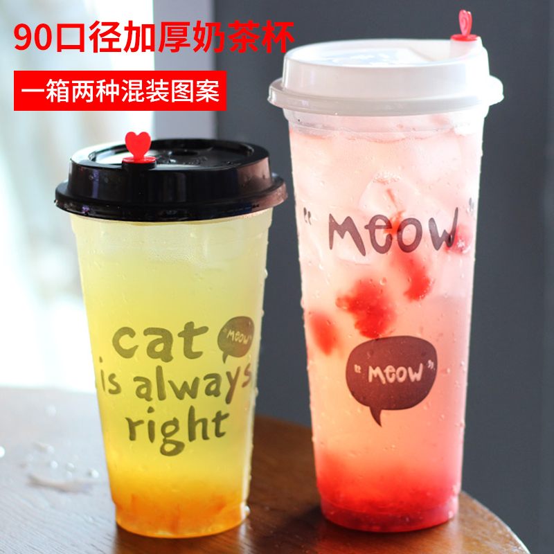 90 caliber milk tea cup plastic cup 700ml disposable juice cup beverage cup thickened with lid sealing plastic cup 500