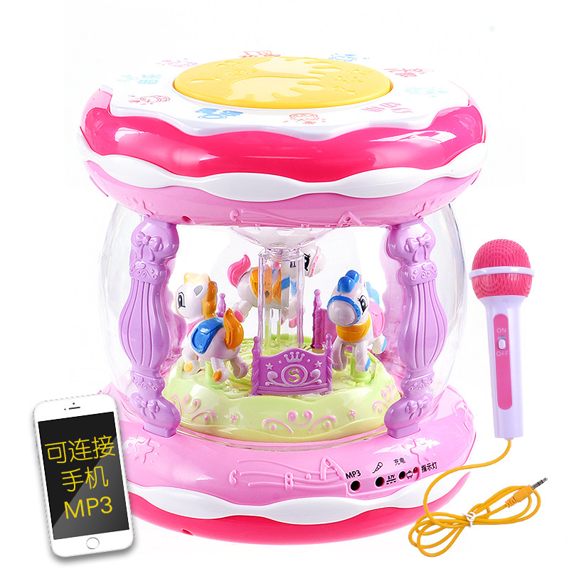 Large carousel music drum (with microphone) large pink carousel (with microphone) medium Trojan drum large macaron carousel drum microphone