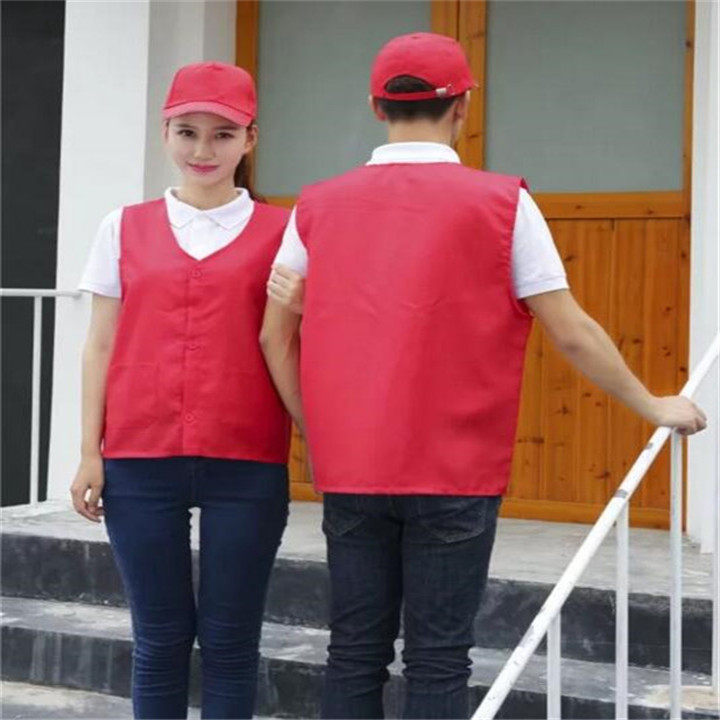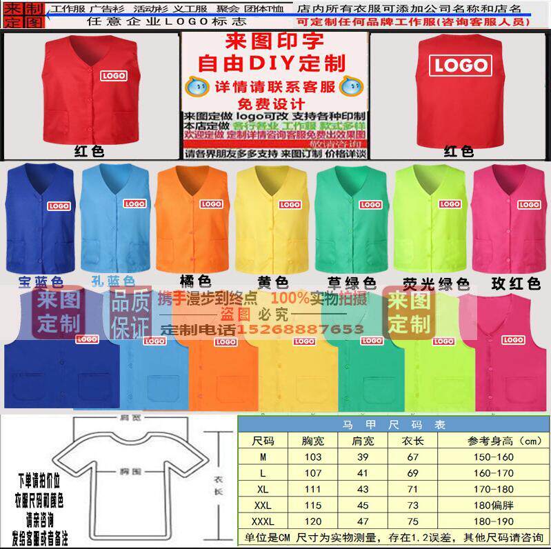 Yellow red green tangerine pink blue peacock blue fluorescent green formwork fee 30 stores all styles can be printed V collar waistcoat 20 composite water honey peach fabric waistcoat hat custom apron custom