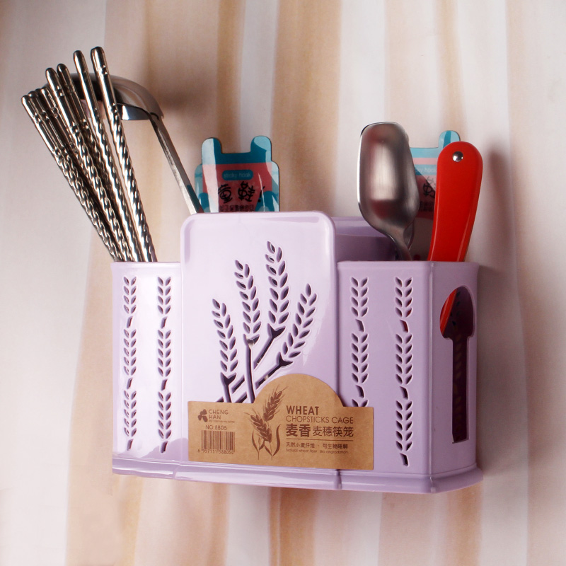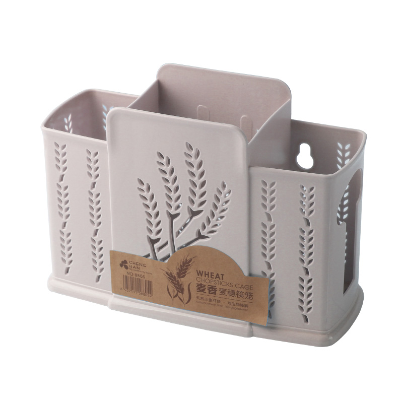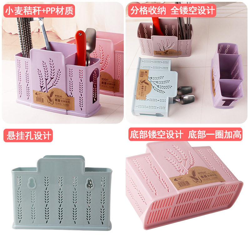 Wheat straw chopstick cylinder domestic drain chopstick cage wall-mounted free-to-punch tableware containing box delivery hook