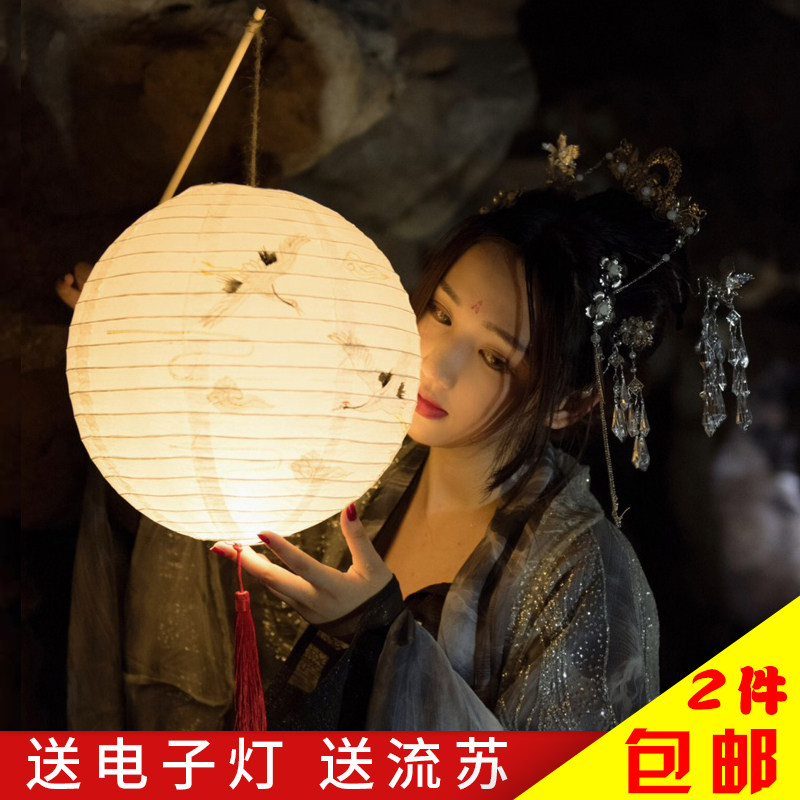 Green sky blue red yellow white watermelon red pink red lantern special Chinese knot Beige LED lantern special electronic light Japanese maid white 40cm spring light unlimited good 40cm bamboo 40c
