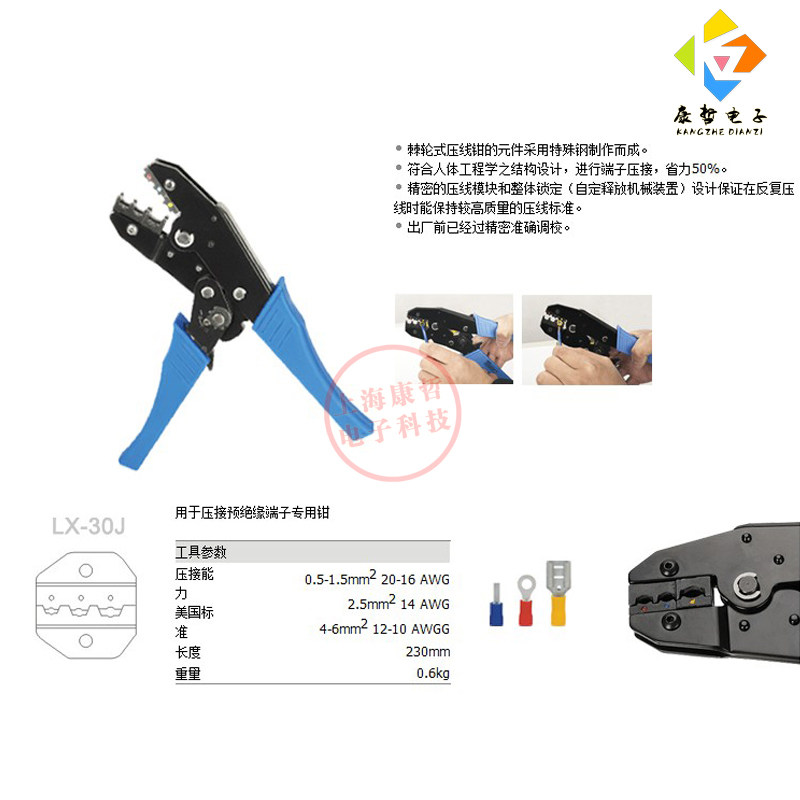 LX-30J pre-insulated terminal block special pliers Ratchet terminal crimping pliers 4-6 large square crimping
