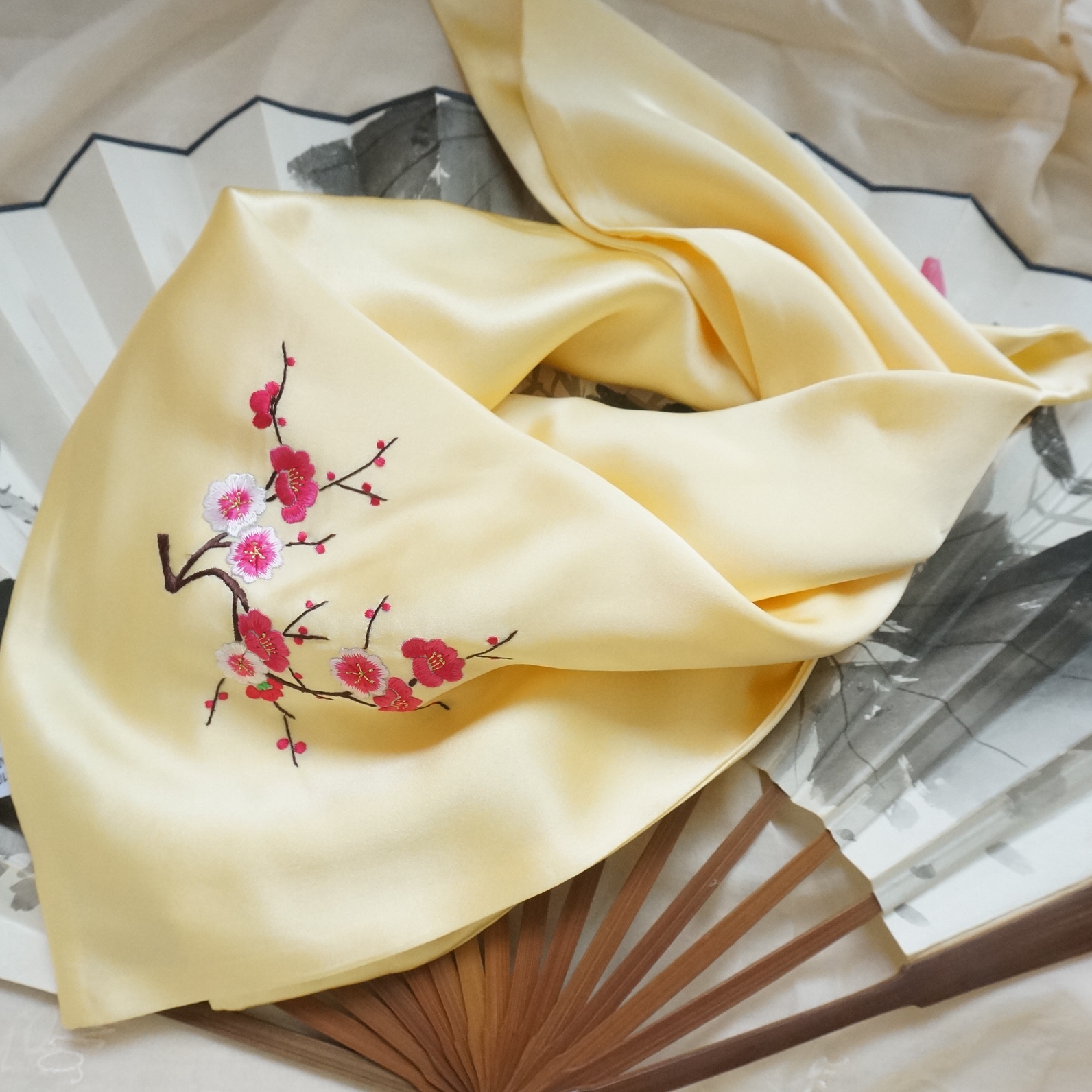 Original silk double layer Suzhou embroidery square hand-embroidered plum blossom new gift box