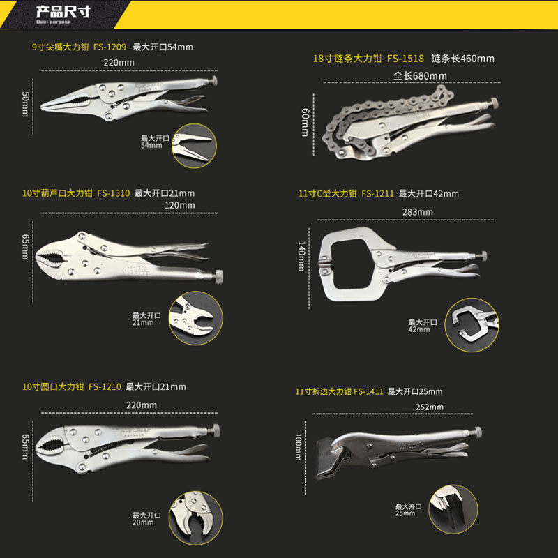14510 14510 sets of shank chrome vanadium steel round mouth vigorously pliers 1209 sharp-mouth vigorously pliers 1518 iron handle chain vigorously pliers 1310 iron handle gourd mouth case with vigorous pliers 1210 round mouth insert