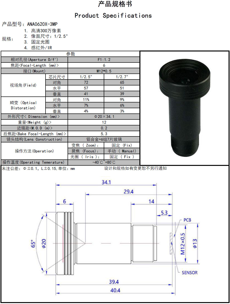 5MP 1 2 5 5 one million starlight level micro-light full-stage high-definition 6MM lens oversized aperture M12 connector