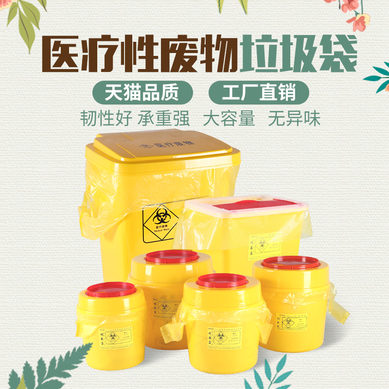 Medical garbage bag medical waste yellow portable flat mouth thickening clinic special waste large garbage bag