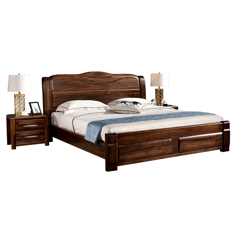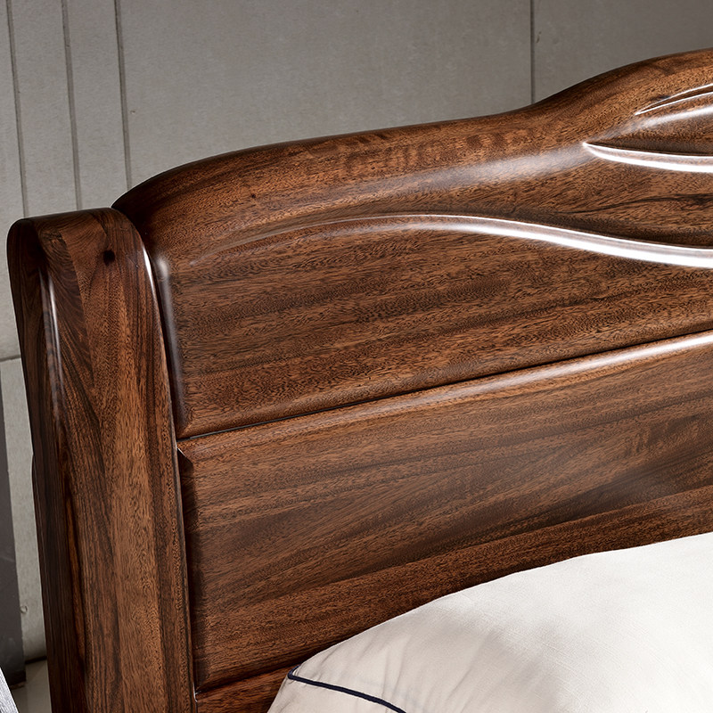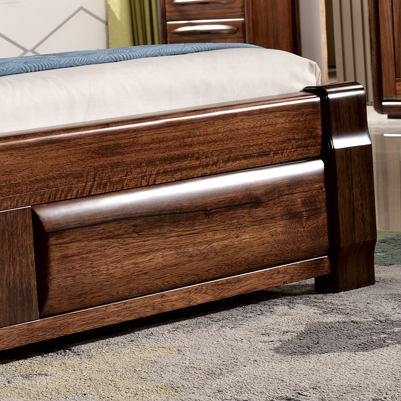 Solid wood double bed 1 8 meters black walnut bed high box modern minimalist Nordic furniture air pressure bed storage bed