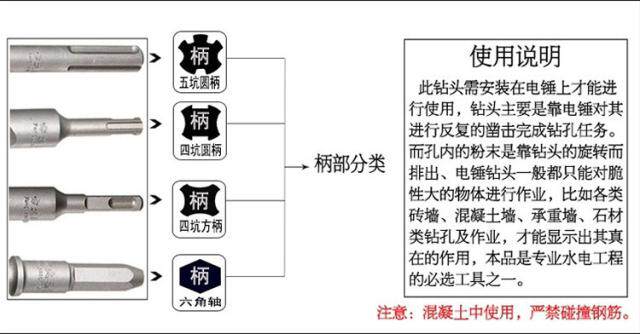 Hibiscus electric hammer drill bit impact drill bit square handle round handle through the wall cement concrete construction through the wall drill bit