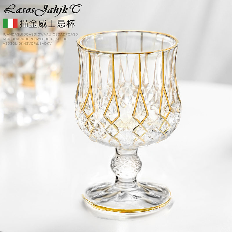 Crystal Sketching Glass Cup Foreign Wine Glass White Landy Cup Bar Whisky Cup Home Water Glass KTV Liquor Cup