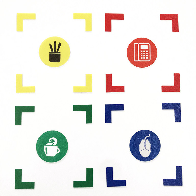 5 blue water glasses 5 blue pen holders 5 blue teacups 5 blue printers 5 blue files 5 blue mouse 5 blue calculators 5 blue calendars 5 blue displays 5 blue trash baskets 5 blue phones 5 blue
