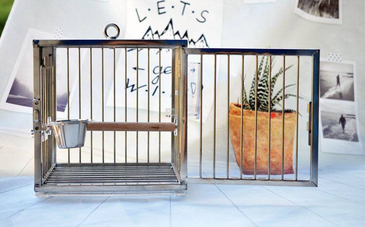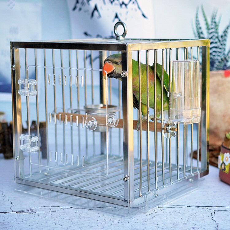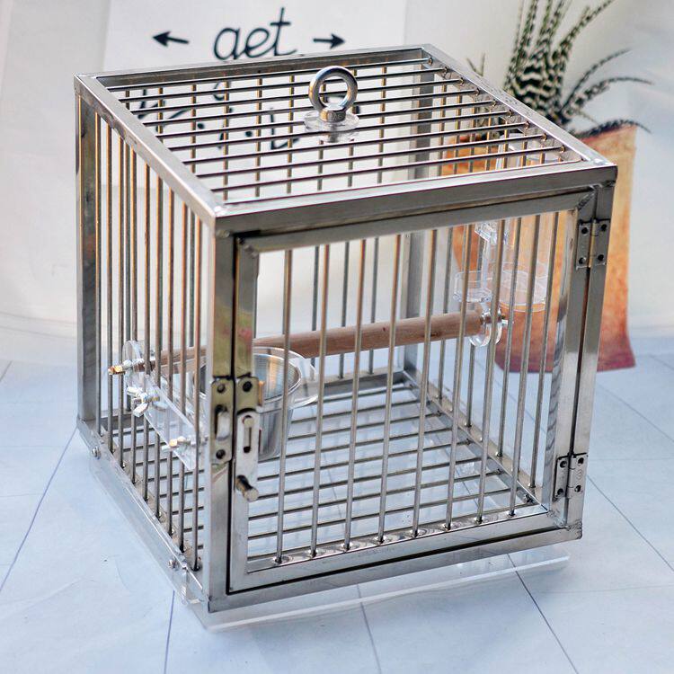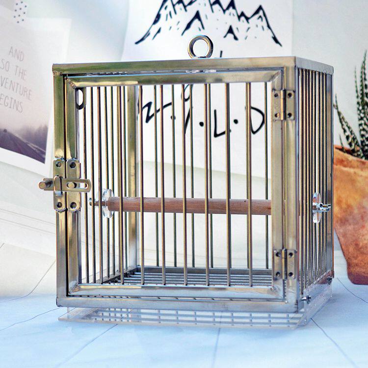 Stainless steel bird cage outgoing cage portable cage outside with cage in small metal bird cage tiger leather peony Xuan Pengfeng Painting eyebrow