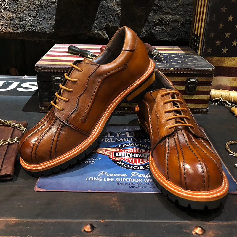 American retro leather low-top brown leather shoes men's shell head tooling Martin leather shoes leisure trend