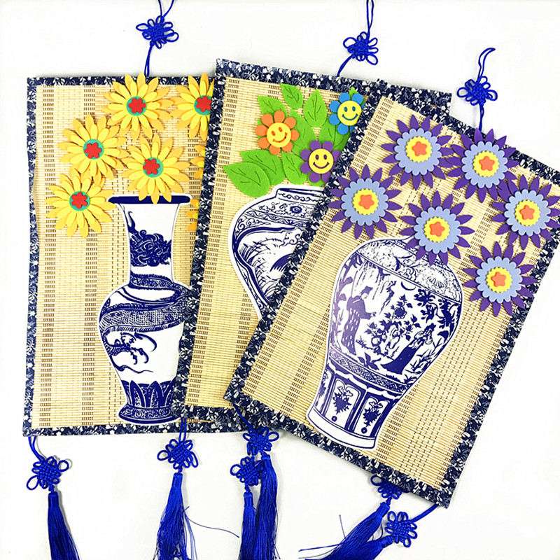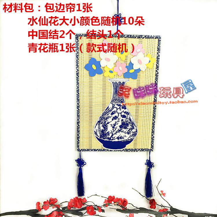 Kindergarten DIY works handmade creative materials blue and white cloth bamboo curtain edging decoration blue cloth bamboo weave curtain