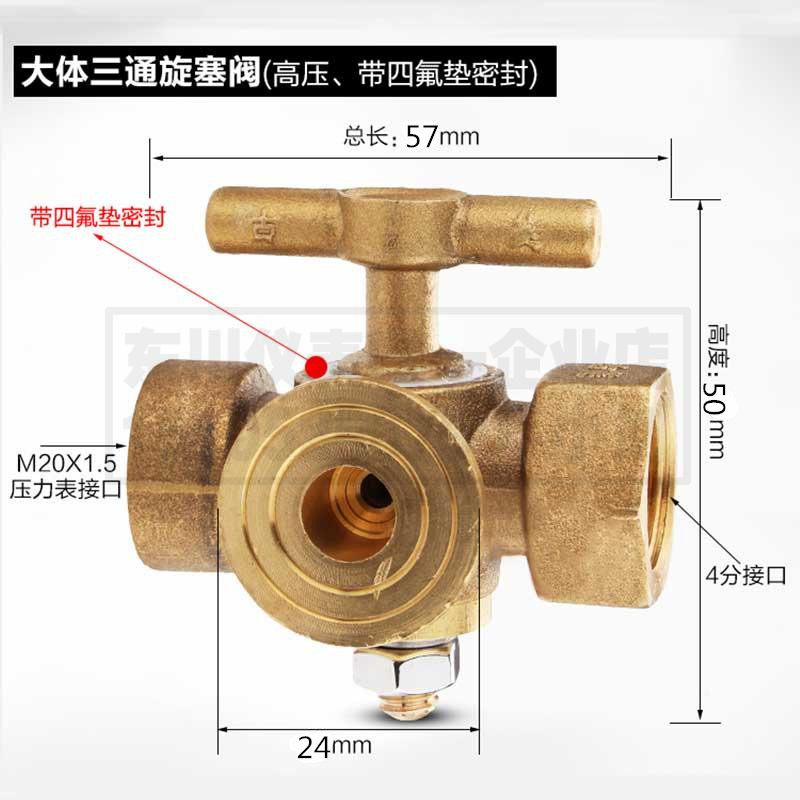 Full copper high pressure thickened pressure gauge three-way plug valve boiler copper cork with vent 4 points M20x1 5