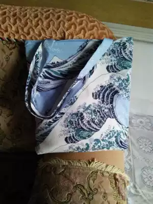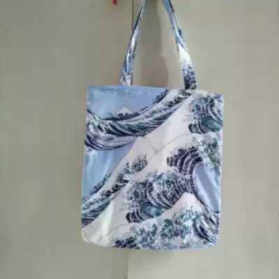 Fabric original Japanese Kanagawa surf art retro handmade female shoulder bag canvas bag eco bag