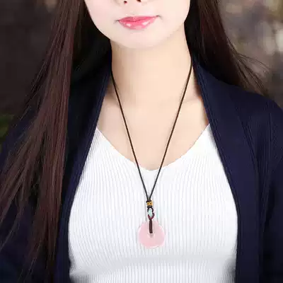 Madagascar pink crystal necklace Female retro safety buckle pendant Adjustable lanyard Clavicle chain Neck strap hanging jewelry