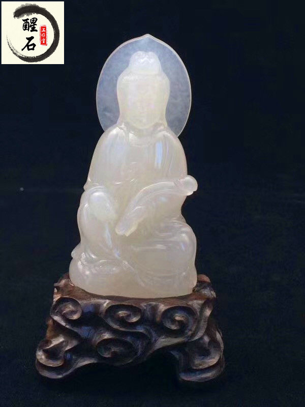 Taiwan backflow famous collection boutique Shoushan stone pendant old pit white lychee frozen stone Avalokitesvara custom special price