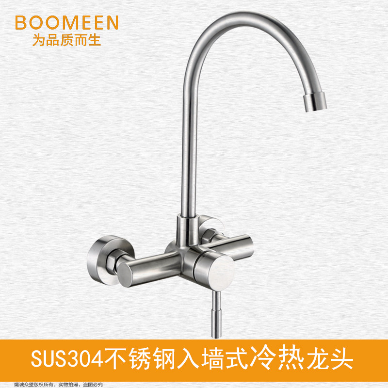 304 stainless steel kitchen tap mop pool washbasin Vegetable Basin Balcony Laundry Pool Twin-hole-in-wall hot and cold tap