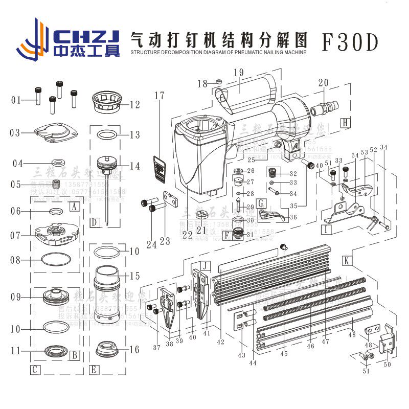 Zhongjie original accessories F30 F30G 422J 1022J 425KA pneumatic nail gun tight ring flower basket tight ring