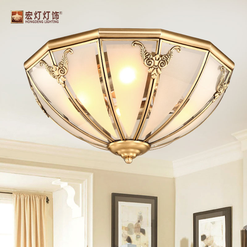 All copper ceiling lamp European bedroom lamp warm and simple study lamp led round room lamp