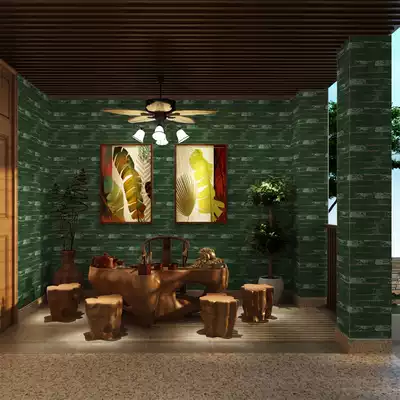 Antique wallpaper retro green 3d three-dimensional cultural fossil wallpaper pattern brick wallpaper do old bar escape