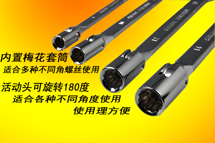 HONGTU fully polished double-headed movable plum 12-angle sleeve makes the Bu wrench rotate 90 degrees