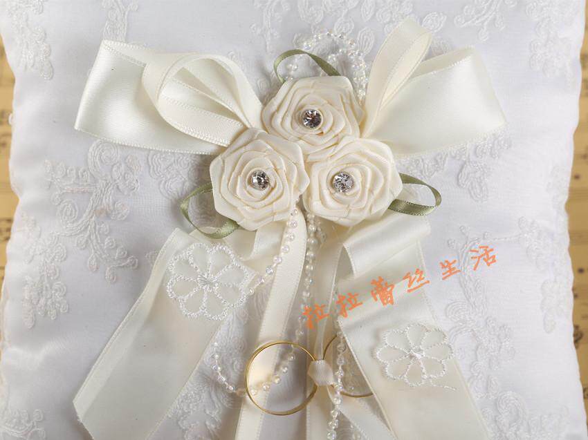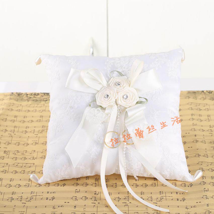 Wedding Celebration White Newcomer Ring Pillow Square Pearl Flowers Withdrawal Pillow Eurostyle Wedding