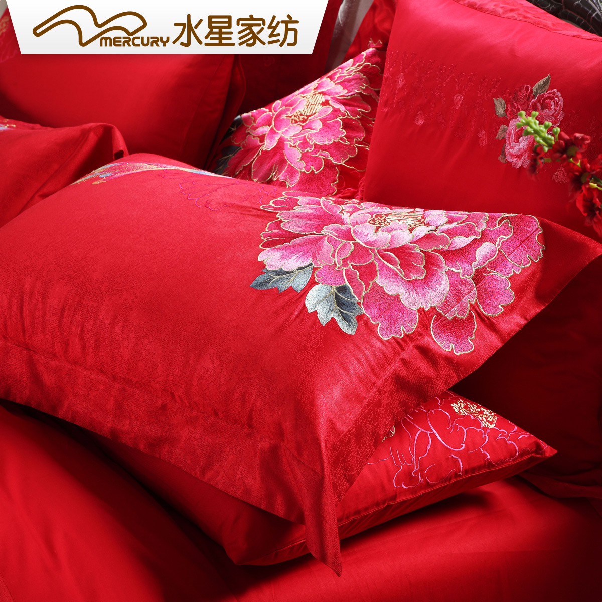 Mercury Home Spinning All Cotton Wedding Embroidery Hairy Hairon 6 Pieces of Twin 1 8m Bed Big Red Festival 6 Pieces of Marriage