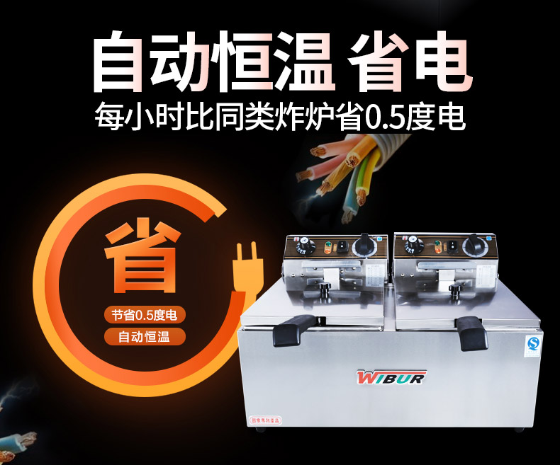 Wilbao 17L single cylinder electric fryer with timing 34L double-cylinder electric stove fryer fried chicken stove fries Snack Fryer