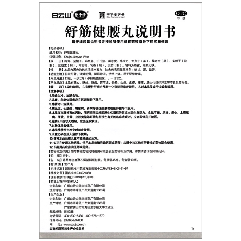 Member 790) Baiyunshan Chen Liji Shujin Jianyao Pills 10 bottles of waist and knee pain, active collaterals and pain relief