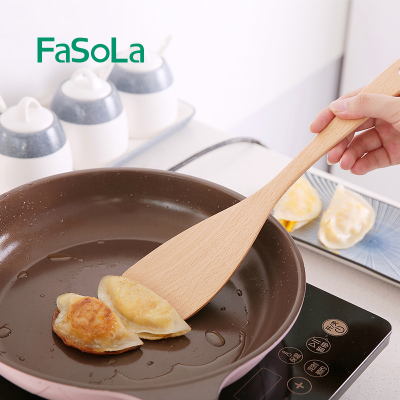 Fasola Beech long handle Spatula Stir-fry spatula Household non-stick pan Wooden spatula Kitchen wooden fried rice spatula set