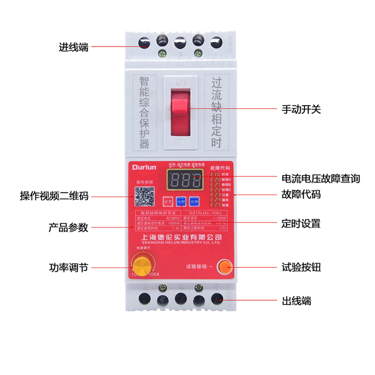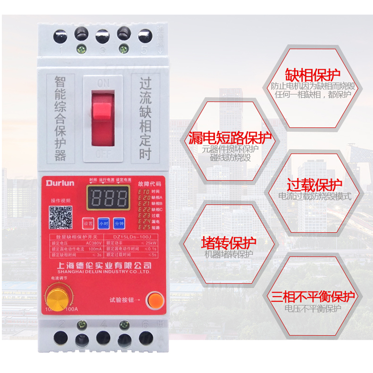 Deren 380v submersible pump deficiency phase protection switch three-phase 40A wind motor leakage short circuit breaker adjustable