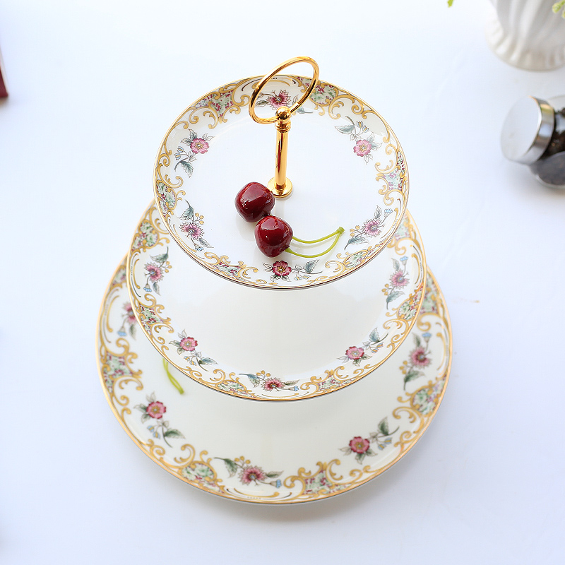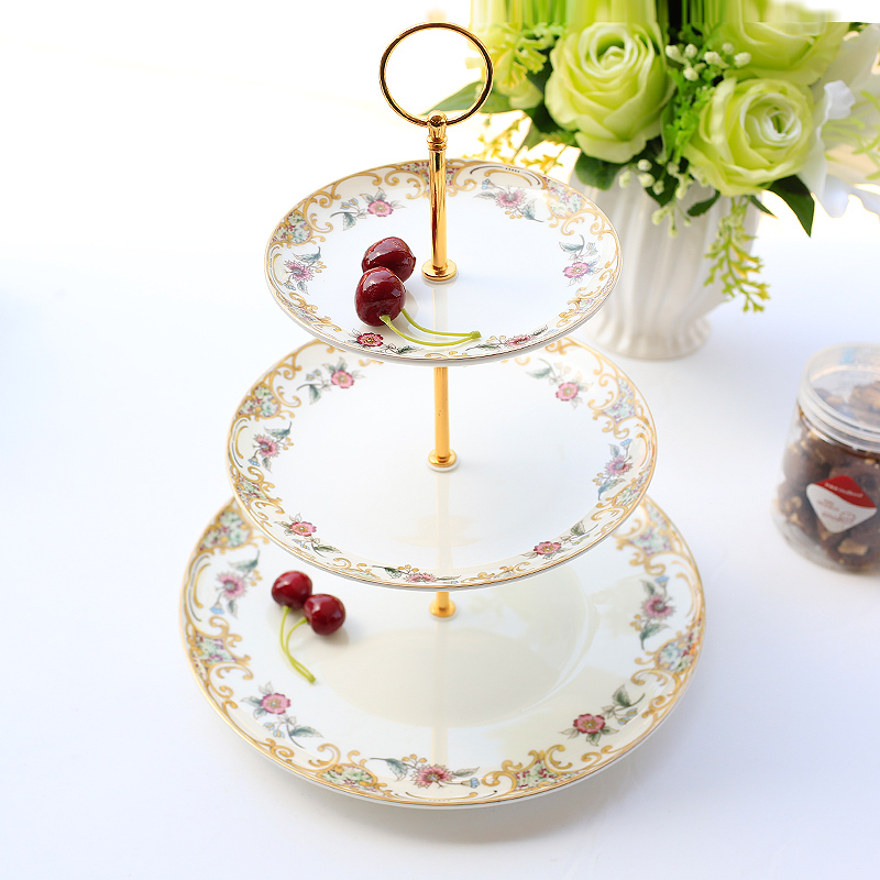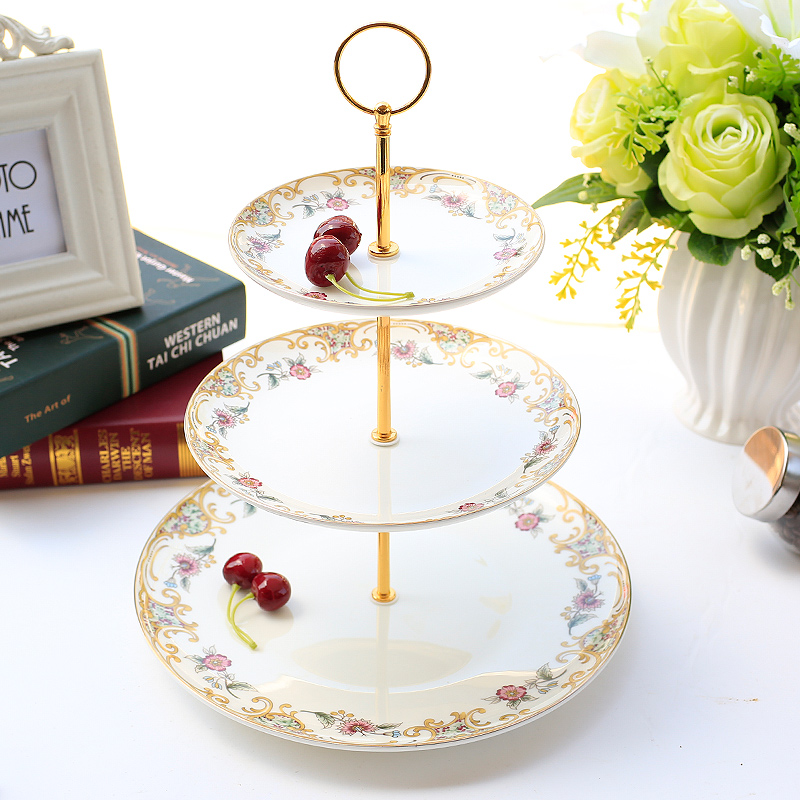 Creative Bone China Porcelain Fruit Pan Modern Living Room Sweet table placed European-style ceramic cake tray Three layers